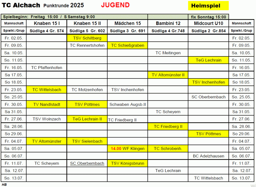 Spieltermine Jugend Sommer 2025 (als PDF herunterladen)